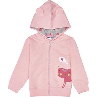 Dívčí mikina s kapucí Cat v růžové barvě. Zapínání po celé délce mikiny. Zip je umělohmotný, aby se předešlo zranění a poškrábání. Na kupuci dvě roztomilá ouška. Na levě straně...
