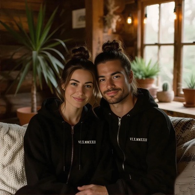 Párové mikiny na zip s vyšitím vlastních římských číslic. Umístění vyšití si můžete zvolit. Vyšijeme Vám datumy seznámení, zasnoubení a nebo třeba datumy narození Vašich...