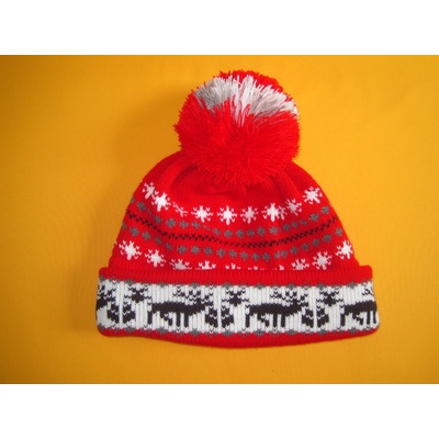 Teplá pletená čepice na zimu zdobená velkou bambulí a norským vzorem. Čepice má zdvojený ohrnovací lem, pomocí kterého se dá upravit velikost, čepice tak dítěti vydrží několik zim. Doporučený způsob praní - v pračce na 40ºC. Velikost na obvod hlavy 57-60cm je výrobcem...
