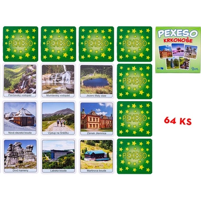 Pexeso v krabičce " Krkonoše" je zábavná hra, která přináší radost nejen dětem, ale i dospělým. Obsahuje krásné ilustrace krkonošské přírody a jejích památek. Hráči se snaží...