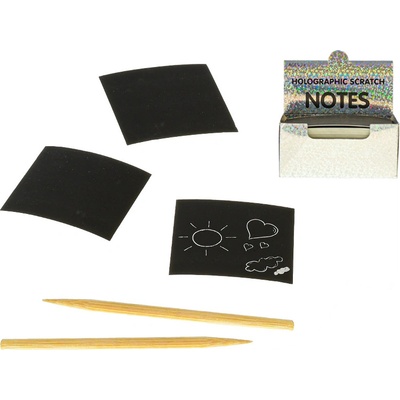 Kreativní sada obsahuje 100 ks škrabacích papírů o rozměru 8,5 x 8,5 cm a dvě pera. Materiál: papír Baleno v krabičce.