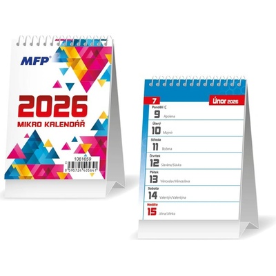 Stolní týdenní kalendář pro rok 2026 s názvem Mikro. Vhodný pro zapisování důležitých poznámek, k organizování různých událostí každodenního života. TYP KALENDÁŘE: stolní...