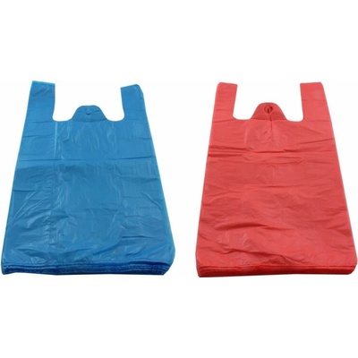 Odtrhávací tašky z HDPE o síle 8 mikronů, nosnost 4 kg. Šířka 25 cm, výška 45 cm, červená, na košilce po 100 ks.