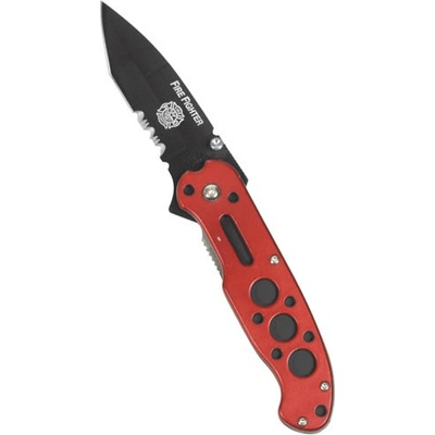 zdařilá replika amerického zavíracího nože Fire Fighter v červeném provedení od firmy Mil-Tec černěná tanto čepel, částečně vroubkovaná pojistka liner lock střenka z pevného, tvrzeného plastu hmotnost: cca 150 g celková délka: 19,5cm délka čepele: 7,5cm -