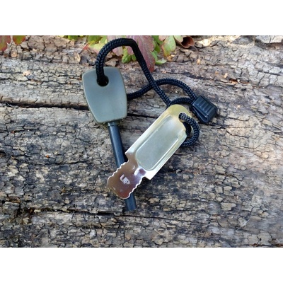 Praktické ocelové křesadlo k rozdělání ohně v délce 8,3 cm. Křesadlo tvoří ocelová tyčinka z hořčíkové slitiny a s plastovým držákem. Je navlečena společně s křesacím plíškem...