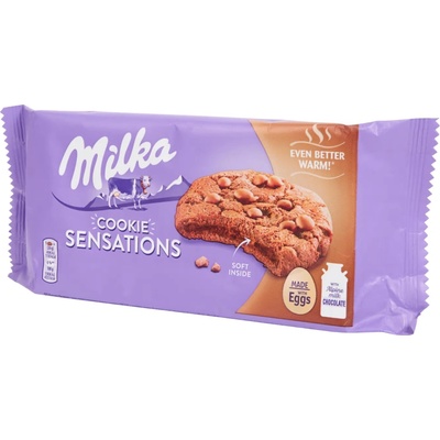 Milka Sensations choco 156 g Kakaové sušenky s měkkým středem a kousky mléčné čokolády z alpského mléka (20 %).• Milka Sensations Cookies All Choco měkká a vláčná, kakaová...