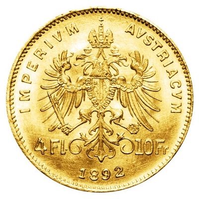 Zlatý čtyřzlatník Františka Josefa I. 1892 - Novoražba Zlaté investiční mince z období Rakousko-Uherska s rokem vydání 1892 rakouská mincovna stále razí jako oficiální novoražbu....