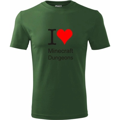Lahvově zelené tričko I love Minecraft Dungeons. nabízené velikosti jsou S,M,L,XL,XXL,XXXL. Tričko je zařazeno v sekcích Dárky pro hráče počítačových her, Dárek pro hráče...
