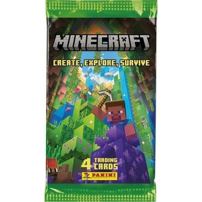Sběratelské karty MINECRAFT. Každý balíček obsahuje 4 karty. Panini přichází se třetí sérii s podtitulem create, explore a survive nové sběratelské karty tématem Minecraft.