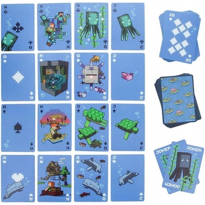 Hrací karty s motivem hry Minecraft. Baleno v plechové krabičce, obsahuje 54 karet.