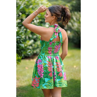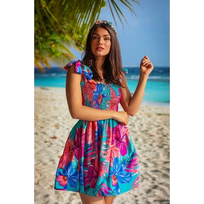 Mini šaty-sukně 2v1 Ezra Ilikai - tyrkysová s růžovou Nový střih vašich oblíbených šatů-sukně 2v1! Ramínka jsou širší a poskytují kreativní možnosti zavázání. Můžete je uvázat...