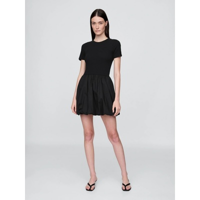 Dámské šaty s tričkovým topem a balonovou sukní – stylový kontrast materiálů a siluet. Horní část z extra měkké modalové směsi, kulatý výstřih a krátké rukávy. Spodní část z...