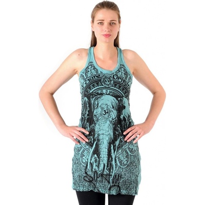 Krátké šaty Sure s širšími ramínky ve stylu tank top. Barva modro-zelená, světle mátová. Atraktivní potisk s motivem hlavy slona. Elegantní sportovní střih se snadno přizpůsobí...