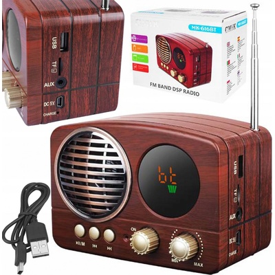Mini staré rádio - retro vintage s Bluetooth + FM/AM rádio / AUX / USB disk / Micro SD je multifunkční přehrávač ze dřeva s moderními funkcemi.