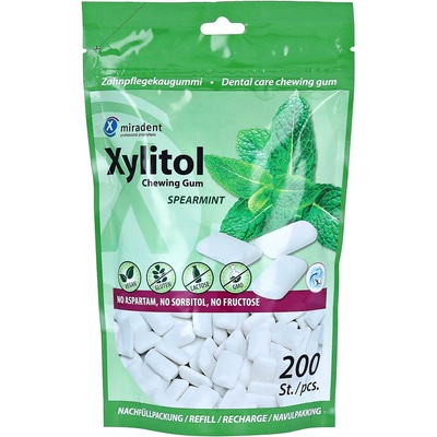 žvýkačky s xylitolem - SPEARMINT Se žvýkačkami Miradent Spearmint se zbavíte zápachu z úst a nežádoucího působení kyselin z jídla. Žvýkačky neobsahují přidané cukry, sorbitol,...