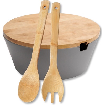 Mísa na ovoce a salát s příbory krásně tvarovaná miska na ovoce a salát s bambusovými servírovacími miskami na salát s bambusovým víkem Mísa vhodná do myčky nádobí bez chuti Ať...
