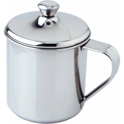 Nerezový hrnek s víčkem, vhodný na míchání pěny pro milovníky klasického holení. Díky uchu na hrnku je možné používat pro míchání pěny horkou vodu bez rizika...