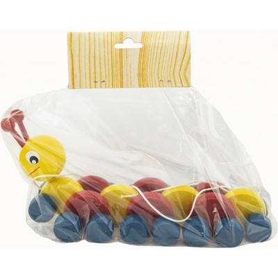 Oblíbená dřevěná tahací hračka ze dřeva na kolečkách pro nejmenší děti, barevná housenka na provázku, která při tažení vlní, jako skutečná. Vyrobeno v Česku. Dětské tahadlo je...