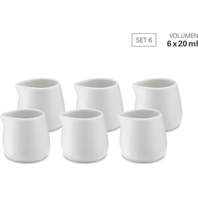 Konvička na mléko 20 ml - sada 6 z porcelánu. Materiál: porcelán Pro kondenzované mléko nebo smetanu do kávy Ideální pro prostřený stůl Délka: 3,5 cm Šířka: 3,5 cm Výška: 3,8...