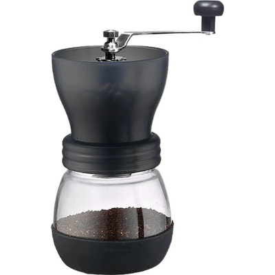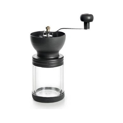 Ruční nastavitelný mlýnek na kávu. Nerezová ocel 18/8 ss (tělo s černým nástřikem) sklo plast (ABS – prstenec PP – vnitřní víko POM – vnitřek těla) hliník - klička keramický...