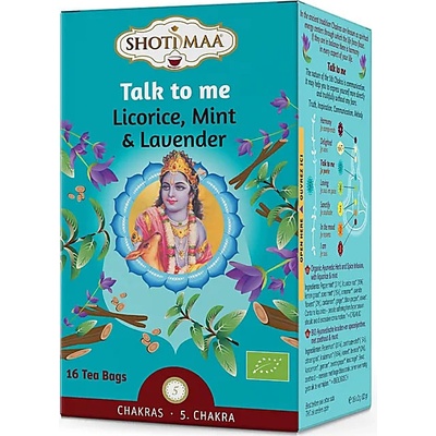 "Talk to Me: čistá svěžest pro jasná slova." Shoti Maa Talk to Me je čistý, osvěžující bio bylinný a kořeněný nálev inspirovaný tématem 5. čakry (Throat / Vishuddha) –...