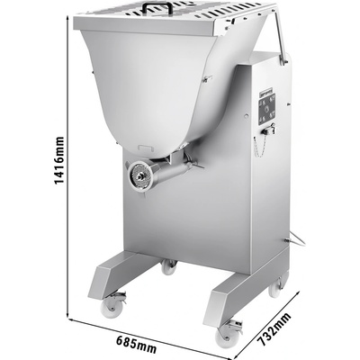 Provedení - Mlýnek na maso - Vyrobeno v Evropě - S exkluzivním patentovaným systémem rozpoznávání talířů - S podlahovou podpěrkou, koly a brzdou - Kapacita vaničky: 60 kg...