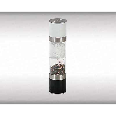 Mechanický ruční mlýnek na pepř a sůl. Oboustranné použití - na každé straně mlýnku lze mít odlišné koření či sůl. Moderní design mlýnku vhodný jako dekorace na stole i jako...
