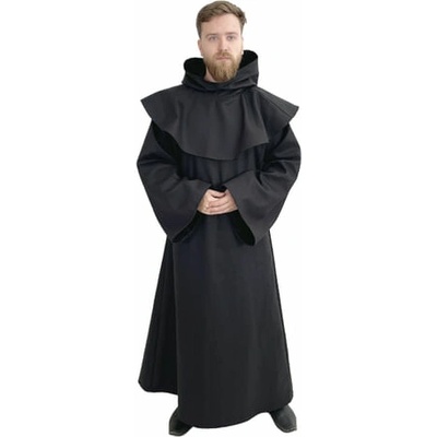 Černá mnišská kutna s kápí a šňůrkou na svazování ti poskytne jedinečný kostým pro středověkou akci, LARP i divadlo. Vhodné též pro druidy, čaroděje, nekromanty, různé kultisty, apod.