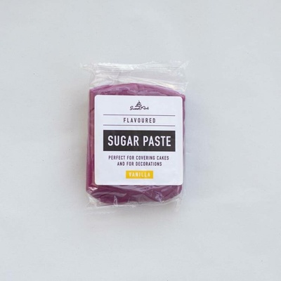 Cukrová hmota s vanilkovou příchutí na potahování dortů a výrobu jednoduchých cukrových ozdob .