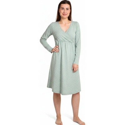 Dámská těhotenská a kojící košilka s dlouhým rukávem Moniel Dots mintová je noční košilka a pohodlné domácí šaty v jednom! Je to multifunkční kousek oblečení, který vám vydrží...