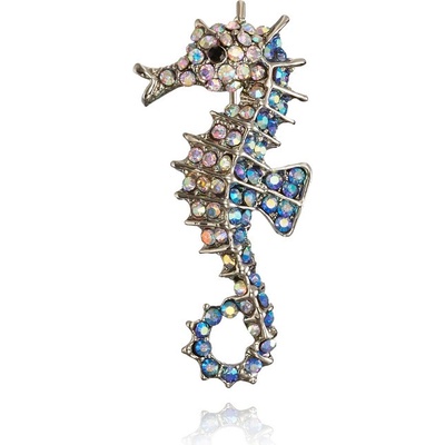 Trendy brož ve tvaru mořského koníka ozdobená krystaly. Krásně doplní a oživí vaše šaty nebo sako.