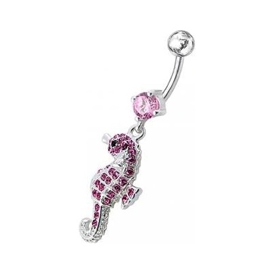 Piercingový šperk určený pro piercing pupíku. Piercing s mořským koníkem zdobeným zirkony.Tyčka a kulička piercingu jsou vyrobeny z chirurgické oceli s jakostním označením...