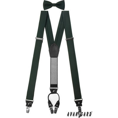Avantgard Set Látkové šle Y s koženým středem a zapínáním na klipy - 35 mm, motýlek a kapesníček model 886 Katalogové číslo: 886-986023 Barva: zelená Odstín: Zelená, černá...