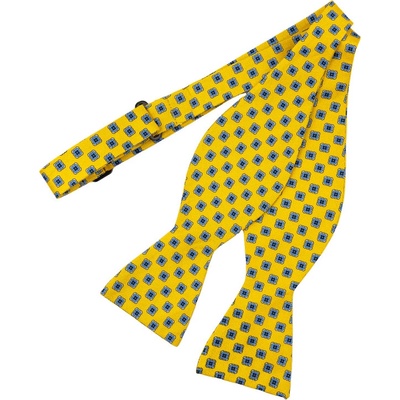 Stylový, výrazný a přitom dokonale univerzální – tenhle žlutý hedvábný vázací motýlek s klasickým geometrickým vzorem je přesně ten kousek, který dodá šmrnc každému saku. Vypadá...