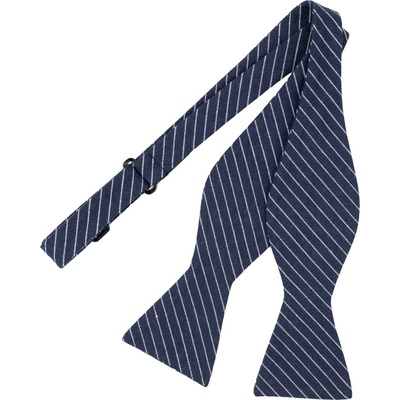 Máte rádi klasické vzory? Tento tmavomodrý motýlek s proužky a jemnou vytkanou texturou je přesně pro Vás! K motýlku nakombinujte kapesníček do saka s kontrastním lemem nebo s...