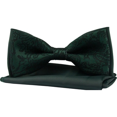 Pánský motýlek Quentino – smaragdově zelený s černým vzorem, včetně kapesníčku Elegantní předvázaný motýlek v kombinaci smaragdově zelené a černé barvy, který zaujme originálním...