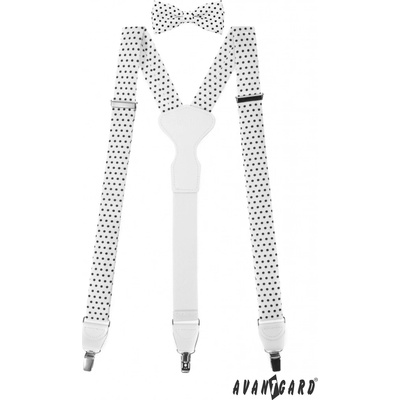 Avantgard Set Látkové šle Y s koženým středem a zapínáním na klipy - 35 mm, motýlek a kapesníček model 881 Katalogové číslo: 881-197601 Barva: bílá, černá Odstín: Bílá s...