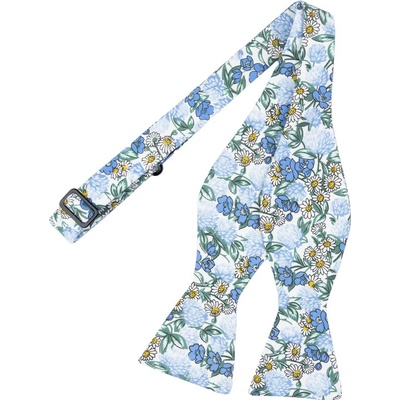 Modrý vázací motýlek Tessa s motivem lučního kvítí, sedmikrásek a jetele se zelenými lístky je veselé oživení Vašeho outfitu se sakem nebo oblekem. Perfektně se hodí k našim...