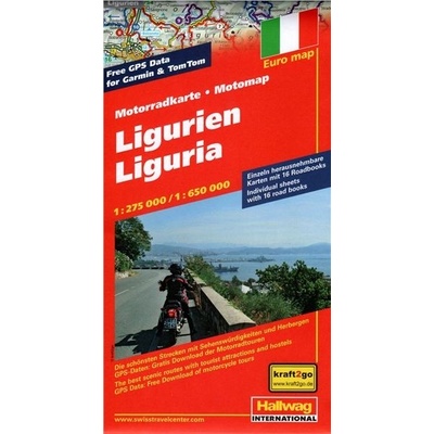 Švýcarský výrobek je navržen speciálně pro motorkáře. Obsahuje celkovou mapu severoitalského regionu Ligurie s přilehlou částí Švýcarska, Německa a Francie v měřítku 1:650 000 a k tomu karty s itineráři 16 nejlepších motorkářských tras, včetně menších map v měřítku...