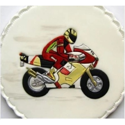 Tato motorka s jezdcem je snadná na vykrojení a vybarvení ve Vaší oblíbené barvě. Velikost 10,5*8 cm.