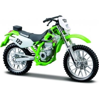 Kovový model motorky Kawasaki KLX 250 SR značky Maisto v měřítku 1 : 18. Motorka má délku cca. 12 cm, šířku ( včetně řídítek ) cca. 5 cm.Model motorky má odpruženou zadní...