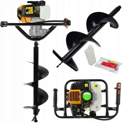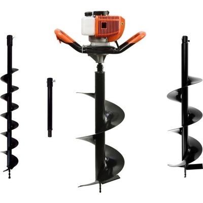 Motorový zemní vrták na hloubení děr pro sloupky Velmi výkonný zemní vrták pro vrtací práce při stavbě plotu. Velmi často se také používá v lesnictví, při tvrobě zahrady, sázení apod. Součástí balení jsou i 3 vrtáky: - průměr vrtáku 100 mm, - průměr vrtáku 150...