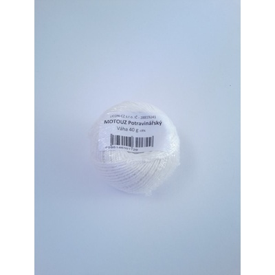 Motouz potravinářský 40 g. Motouz potravinářský bílý LEN 40 g, 105 x 6 tex. Jak z názvu vyplyvá motouz je vhodný i pro potravinářské účely ( rolády, uzenina, klobásy,...