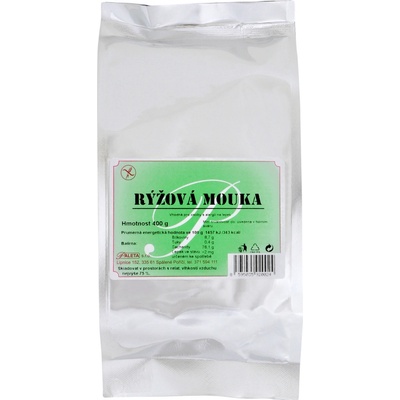 Mouka rýžová hladká. Skladujte v chladu a suchu, mimo dosah slunečních paprsků. Země původu: ČR.VÝŽIVOVÉ ÚDAJE NA 100 g: Energie: 1 481 kJ/349 kcal Tuky: 1 gz toho nasycené...