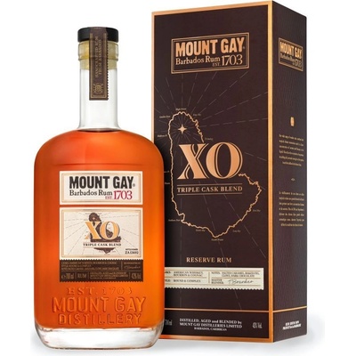 Mount Gay XO je blend vyzrálých rumů vyráběn v malém množství vyrobený v nejstarší, stejnojmenné rumové palírně na světě založené v r. 1703, která po staletí zdokonalovala jemné umění míchání a zrání bohatých a aromatických rumů.