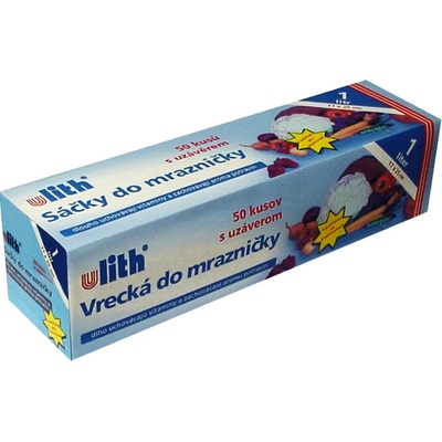 Zamrazovací sáčky v rozměru 17x25cm s objemem 1 l (s EAN-kódem) v balení 50 ks v krabičce značky ULITH s popisovacím polem s praktickými uzávěry.