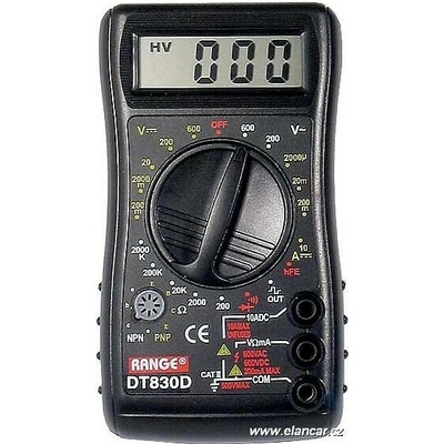 Multimetr DT830D RANGE s prozváněčkou. Měří napětí AC a DC, proud DC, odpor, propustné napětí diod, zesílení tranzistorů. Je vybaven testerem vodivosti a průchodnosti el....