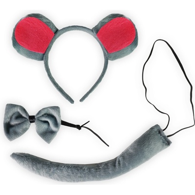 Set Myš obsahuje myší uši na čelence, motýlka a myší ocas. Sada šedá myška pro děti.