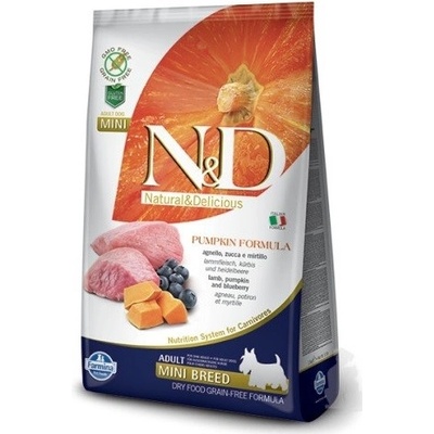 Krmivo N&D Dog Adult Medium & Maxi Grain Free Pumpkin Lamb & Blueberry 12kg Kompletní krmivo pro dospělé psy středních a velkých plemen bez obilovin. Základ tvoří jehněčí maso, které je doplněno o mnoho cenných vitamínu a minerálů. Díky jehněčímu masu je tak krmivo...