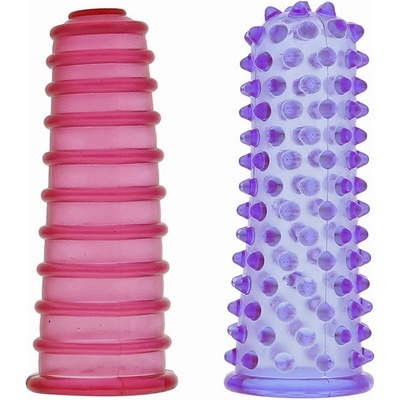 Sada dvou návleků na prst fialové a růžové barvy ke stimulaci klitorisu nebo vagíny. Jeden návlek má na povrchu stimulují drážky a druhý výstupky - oba dva zaručí maximální...
